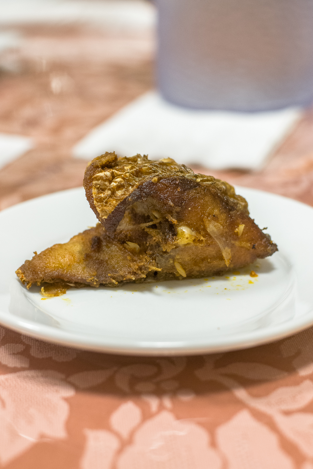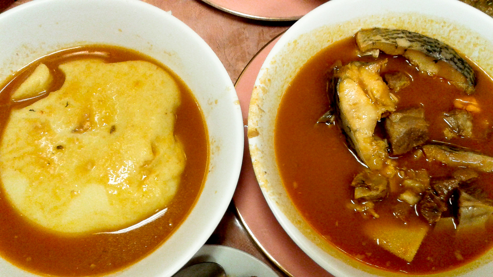 What I saw many customers order during my first trip was the widely eaten West African dish, Fufu. The name refers to the cassava and plantain roots pounded to produce a starchy and stretchy mound. Hence, any stew can accompany this beloved carbohydrate, and our order was made with goat meat, goat stomach, and Tilapia fish. I had warned my dining companions of a possible long wait judging by what I saw on my first visit. Meanwhile, we were provided a bowl of water with some hand detergent in preparation for the eating. And quite a wait it was. But the cooking time was spent more on stewing the soup made from scratch and not the making of the fufu as I had thought. My friends concluded that the fufu was the powdered form, not the pounded tubers, albeit a decent rendition judging by its smooth texture. The goat meat and stomach were not fall-off-the bone tender which was quite a pity since they tasted very fresh with a slight gamey quality. The fish steaks were equally fresh and cooked perfectly, qualities that I appreciated even though it is not my favorite type due to its inherent muddy quality. But it was the wonderful soup that brought the elements together with its savory, fragrant, spicy, and slightly sour qualities that made it completely sippable by itself. Now, I know why West Africans love this dish, and my friends overstuffed themselves on this occasion.