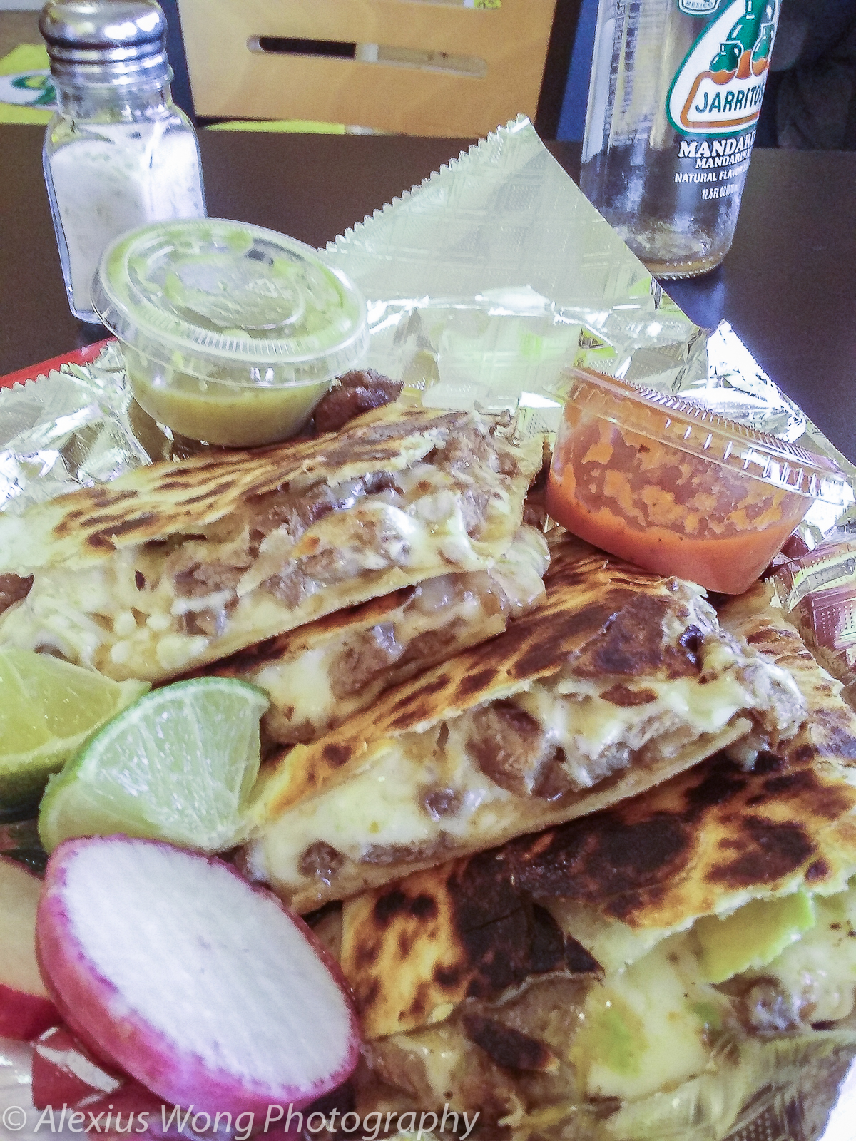 Walking into the wide space, one is confronted by a large order counter with a expansive menu displayed above. It can be daunting for the novice to the menu, but many visits to other authentic area Mexican restaurants prepared me in navigating this Latino cuisine. An order that such friend was raving about was Quesadillas. The stuffed tortillas arrived well-grilled with the right amount of char providing that smokey note. What it encased was a generous amount of Mexican mozzarella-like stringy cheese accompanying some chunks of cooked beef, and thankfully, not ground beef like in some establishments, which my friend was really enjoying his bite on this occasion. A similar order on another visit was a bit disappointing with the lack of char on the tortillas, and an overwhelming amount of cheese. Our drink orders during our many visits were the perfect thirst quenchers consisting of Jarritos (Mexican sodas made with real sugar and fruit essence), house-made Rice Milk (Horchata), Tamarind Water (Tamarindo), and Hibiscus Water (Jamaica). These non-bottled drinks were both tasting recently-made and the perfect balance of the ingredients along with the right amount of sugar without being cloyingly sweet. A healthier choice is fresh Carrot or Orange Juice made to order and tasting naturally sweet.