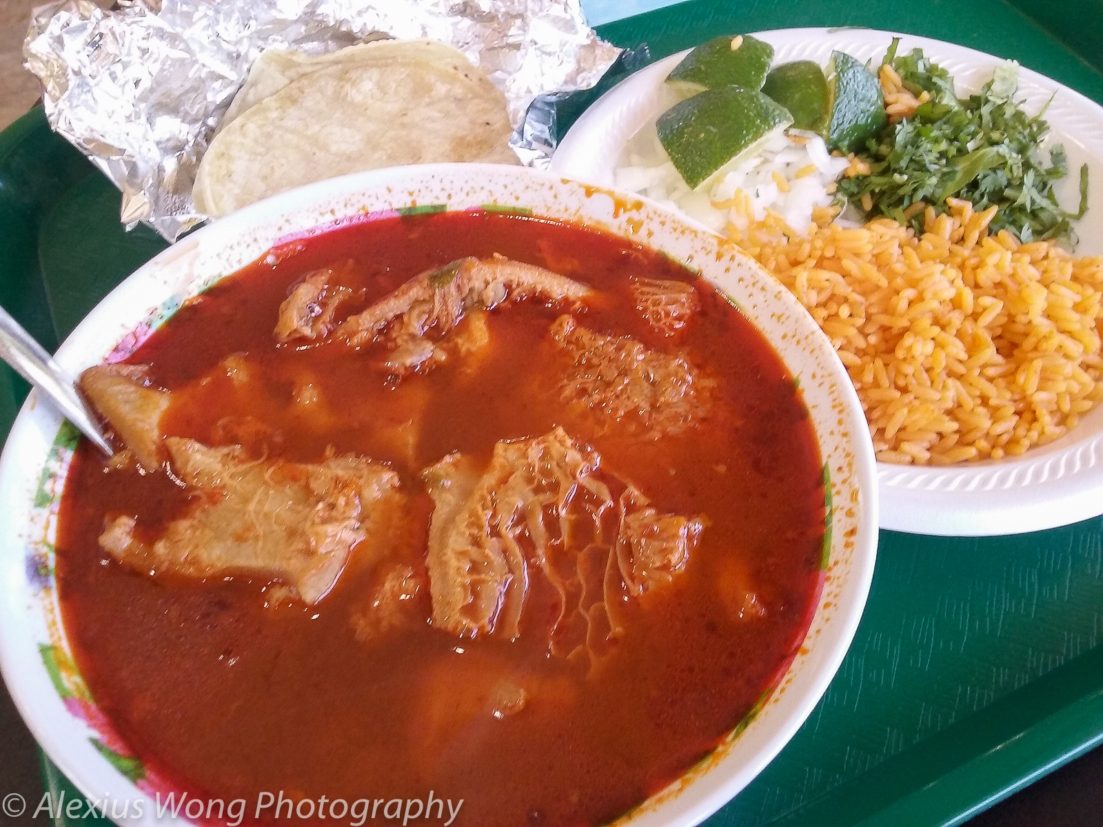 My visits were made on the weekends, and I noticed that many customers ordered the Mexican perennial, Menudo. The bowl arrived with its achiote-stained red soup submerging big pieces of the stomach floating and chucks of bone. One taste of the soup revealed a tasty broth but there was a hit of funkiness from that part of the cow. The toppings contributed some onion sweetness and crunch, the cilantro herbaciousness, and good amount of lime fruit acid that helped to temper with off-notes in the soup. The pieces of offal were well cooked making them smooth and falling apart fairly easily in the mouth. However, after half way through this bowl, I had enough of this cut of meat even though I grew up eating it, albeit with a much smaller quantity. All in all, I appreciated this well-made bowl supposedly with its flavors strong enough to cure a severe hangover.