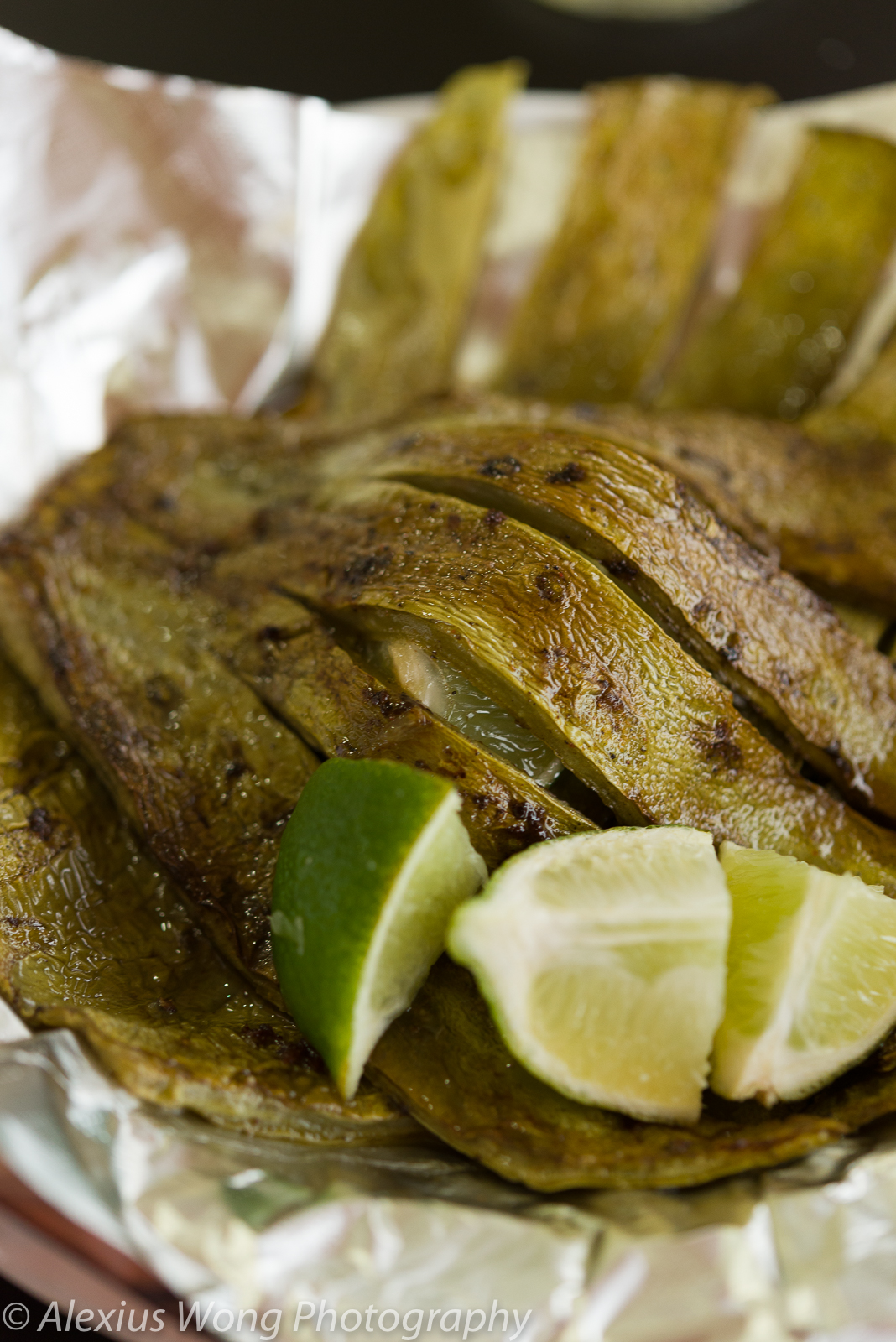 Flautas are popular in Mexican taquerias and I had to taste their version. My plate arrived with 4 stuffed crispy tacos inundated by a mound of toppings consisting of lettuce, tomato, sweet onions, all slathered with some crema (Mexican sour cream) and crumbled cheese, that hinted of both Parmesan and blue cheese. A bite into the first flauta caused me to pause. The crispy corn tortilla encased a chicken stuffing that was dry and stringy, an indication of overcooking or over-frying. The second roll fared much better and injected more assurance in this diner. The dark chicken meat was fairly moist and well seasoned, making each bite enjoyable especially with the different toppings that added more moisture and flavor. The side of refried beans was as good as it gets, tasting velvety smooth and properly seasoned, good enough to belie its true humble nature. A side order of Nopales, grilled cactus, was revelatory to me. The leathery paddles exuded some good char flavor along with its slightly bitter natural notes, and with a good squeeze of lime (all limes pieces were necessary), the acid made each strip quite enjoyable and palate provoking, this tasting different (and better in my mind) from the usual pickled version.