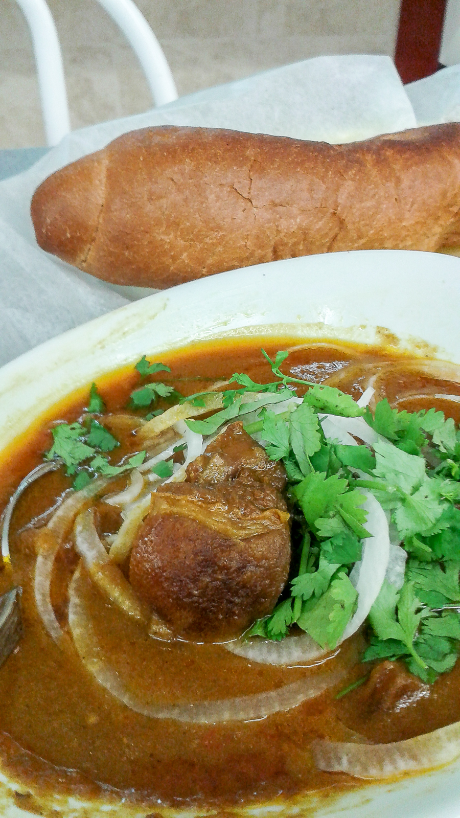 The other stew, and final dish, is Cari De, Goat Curry. This dish was not what I expected at all. Pieces of goat meat with the skin intact were coated in a thick curry sauce, more viscous than the usual Vietnamese curry. Furthermore, it was slightly sweet and it had a hint of acid (confirmed by the chef) with more spice fragrance than the usual renditions, tasting a step above Japanese curry but not the Madras kind. I started to appreciate the rather complex curry sauce as well as the meat whose mild-tasting skin I eventually got used to. Again, the baguette bread was the perfect accompaniment for the dish, instead of the noodles.
